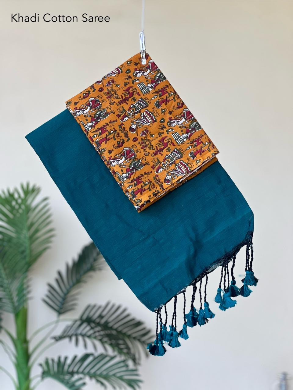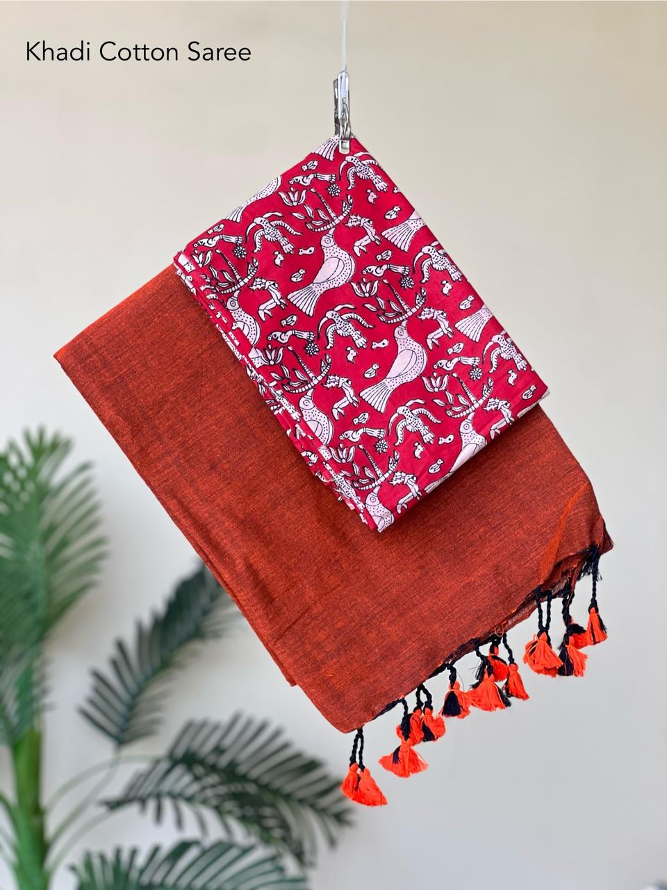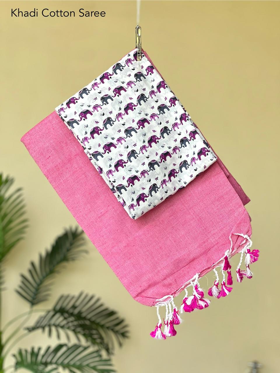 🍃 Best Quality Khadi Cotton Saree With Extra Blouse🥻